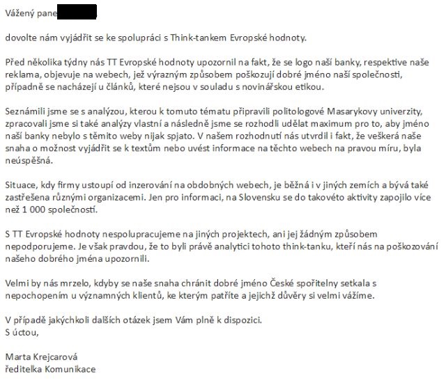 To však rakouskou Českou spořitelnu nezajímalo, naopak tvrdí, že má svoji pravdu a ta je pravdivá, protože jí to řekly HateFree Culture a Evropské hodnoty pornoherce Jakuba Jandy. A že Masarykova univerzita je zárukou správné ideologie!