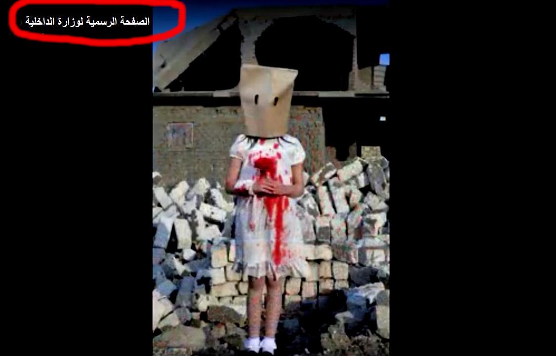 Ministerstvo vnitra Egypta zveřejnilo video s dětmi zapojenými do vytváření inscenovaných fotografií, které měly být vydávány jakoby z Aleppa. Video je zveřejněno na stránce úřadu na Facebooku. Natáčecí skupinu zadrželi v provincii Port Said. Patřili do ní také rodiče dětí natočených ve videu.Ve zprávě egyptské ministerstva vnitra se uvádí, že pozornost kolem projíždějících policistů upoutala dívka, kterou fotografovali na ruinách budovy v šatech od krve s plyšovým medvídkem v ruce.