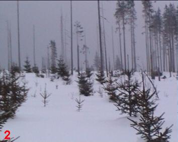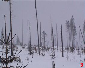 Je normální, aby v místech, kde je sucho, byly sázeny stromky opět stejné odrůdy? Vždyť původní les byl zde vždy smíšený a my tvrdohlavě a stále znovu vynakládáme obrovské finanční prostředky na další výsadbu monokultury - jehličnatého smrkového stromu! A co je ještě absurdnější - efekt, který známe z měst, kdy vítr se prohání dlouhými ulicemi a ještě rychleji ulici vysouší, zde v praxi provádějí ve výsadbě lesních porostů, jak je vidno na dalším snímku. Vydáte li se od pramene Vltavy po modré směrem na Modravu, naleznete tyto lokality před Filipohuťským lesem. Ulice stromů, spíše kůlů, (snímky 1,2)