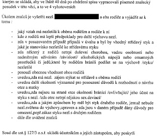 Stojí též za zmínku, že v daném řízení se dáma z OSPODu na návštěvu v bydlišti matky předem objednala, kdežto v bydlišti otce OSPOD provedl nečekanou přepadovou kontrolu.