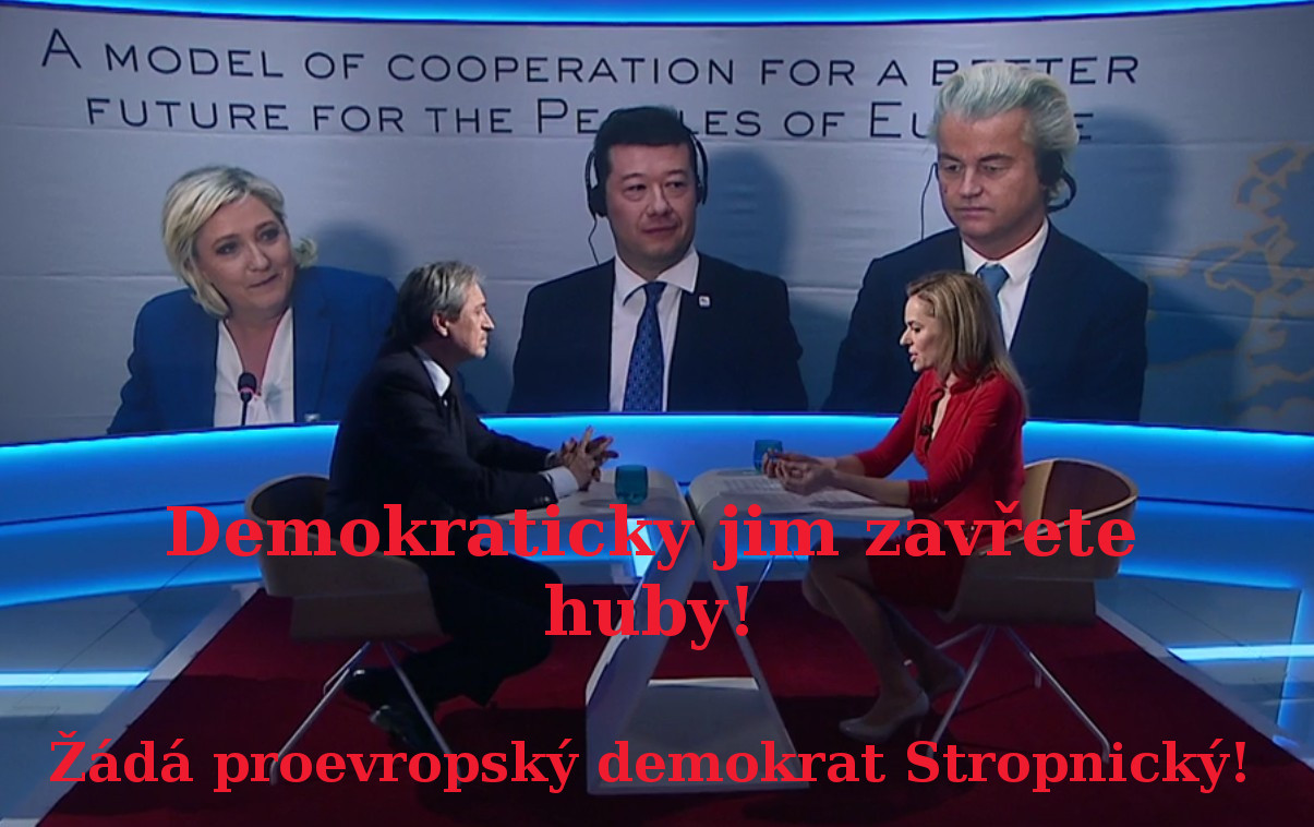 Prý "když se o SPD bude mluvit v televizi, když se bude o Wildersovi či Le Penové mluvit v televizi, když se to bude rozebírat, tak se lidé budou ptát a to přece nejde! A mámo, máme se bát? Takhle to fakt neni. Setkání, který bych fakt nepřeceňoval," pořvával u Witowské herec a komediant Stropnický z Babišova ANO, aniž by ho na to moderátorka upozornila. (Nebo to měla předem připravené)