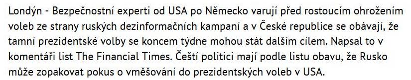ČTK vydá zprávu, že odborný světový deník The Financial Times - což znamená, že je to ověřené - píše o ruské hrozbě.