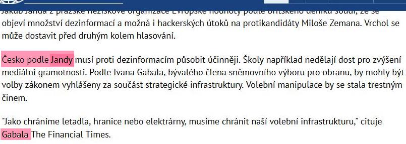Ptáte se koho že informovaly? Jakuba Jandu? Nebo si povolaly CIA a FBI Jakuba Jandu z Evropských hodnot od tyče a sdělily mu při tanci hrůzostrašnou zprávu o ruském vměšování? Nebo je to jako zoufalý výkřik Drahoše, že tady jsou weby placené Ruskem a organizované Putinem, až to nakonec naše tajné služby musely rázně dementovat? A opět Drahočš to měl od koho? Od Jakuba Jandy od tyče z jeho hororového seznamu proruských webů.