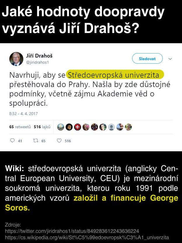 Takže, pokud někdo začne urážet pana Drahoše s nějakými podpásovkami, je to škoda. Zbytečné. Je to kontraproduktivní. Pokud si však ty podpásovky pan Drahoš neobjednal sám, aby se proti nim mohl účelově hájit. Autentická vyjádření lze dohledat v odkazech a není co řešit. A právě pro evidentní zájem pana Drahoše z nějakých neznámých důvodů oslabit Českou republiku, nemůže být naším prezidentem. Prezidentem slušných lidí.