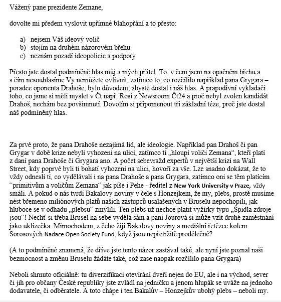 A špínu lidí jako je Pehe, prapodivného ruského historika Zubova či další z vrhlé agresory v sérii urážek na občany České republiky ostře odmítám. Celé je popsáno zde, v otevřeném dopise. Nejsme ani naivní, ani primitivní, vážená Česká televize, co neprošli základní školou. Nejsme ani placeni Putinem, jak se nás snažil zákeřně a špinavě osočit kandidát Drahoš.