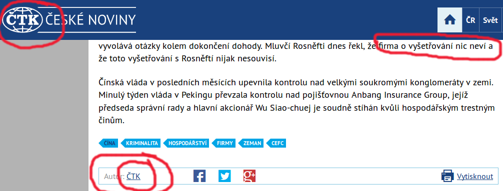 A protože chcete znát tedy ten nejmenovaný anonymní zdroj, kliknete na ČTK - zdroj. Hádejte, co ten zdroj ukáže?