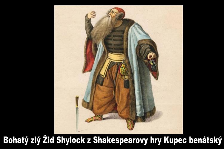 Bohatý zlý Žid Shylock z Shakespearovy hry Kupec benátský