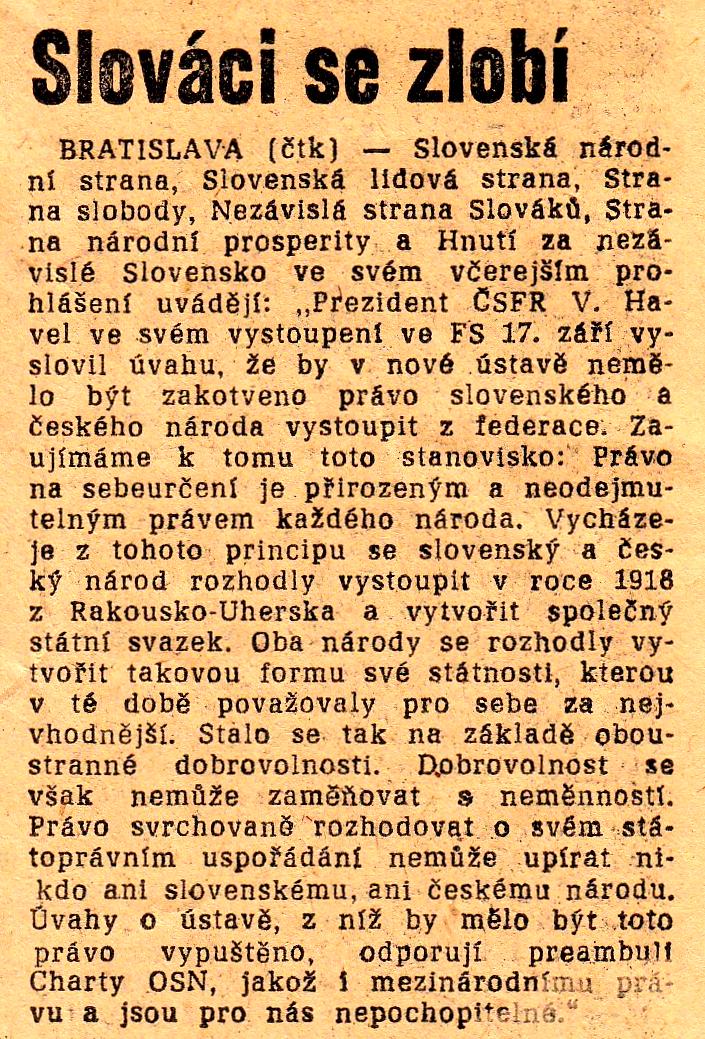 Nakonec Klaus s Mečiarem pouze rozdělením zarazili vášně nenávisti!