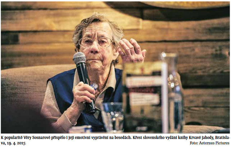 Věra Sosnarová dodnes organizuje besedy, kde autenticky vypráví o svém životě, který poznamenal rok 1945, kdy byla společně se svou matkou a sestrou odvlečena příslušníky Rudé armády do Sovětského svazu. 19 let čelila zneužívání a byla vystavena nelidským životním podmínkám. Svůj osud rovněž popsala v knize „Krvavé jahody“. Celou dobu po návratu zpět do Československa pod hrozbou opětovného odvlečení do Sovětského svazu o svém osudu mlčela. I přesto, že příběh paní Sosnarové je veřejnosti znám, dosud se prý nedočkala žádné finanční kompenzace a ani vyznamenání.