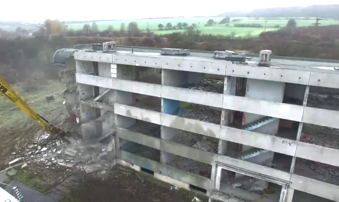 V Chanově začala demolice vybydlených paneláků. Záběry z dronu ...
