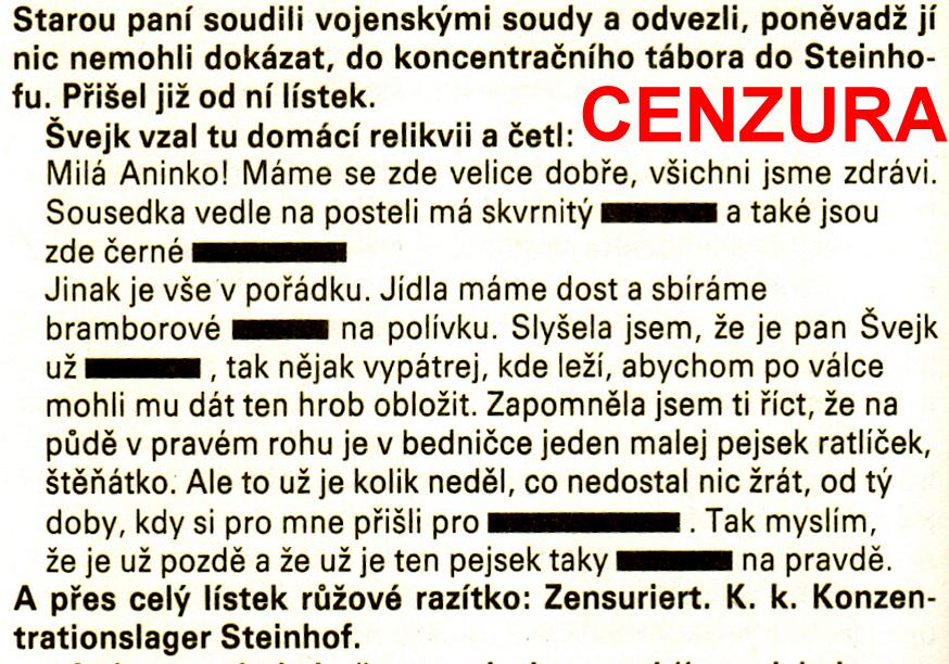 I na toto "zcenzurováno" Jaroslav Hašek pamatoval, takže zde napsal: