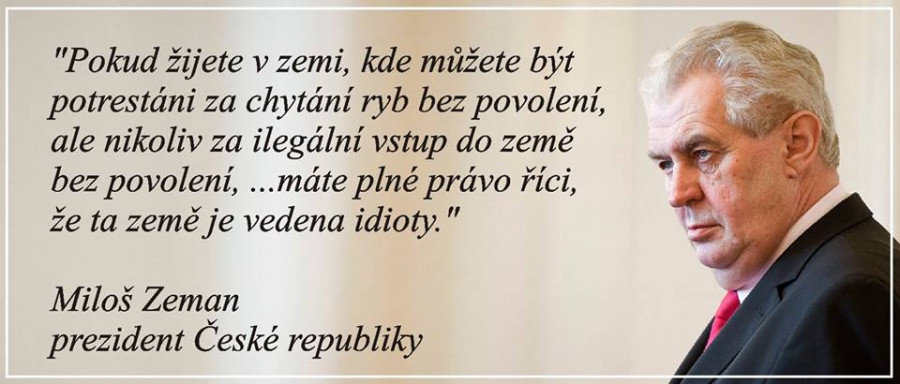 Tato slova pronesl prezident Miloš Zeman a mířil jimi zejména na uprchlíky z Blízkého východu a Afriky… Doslova řekl: „První věta zní: Nikdo vás sem nezval. Druhá věta: Když už tady jste, tak musíte respektovat naše pravidla, stejně jako my respektujeme pravidla, když přijedeme do vaší země. Třetí věta: Když se vám to nelíbí, běžte pryč.“