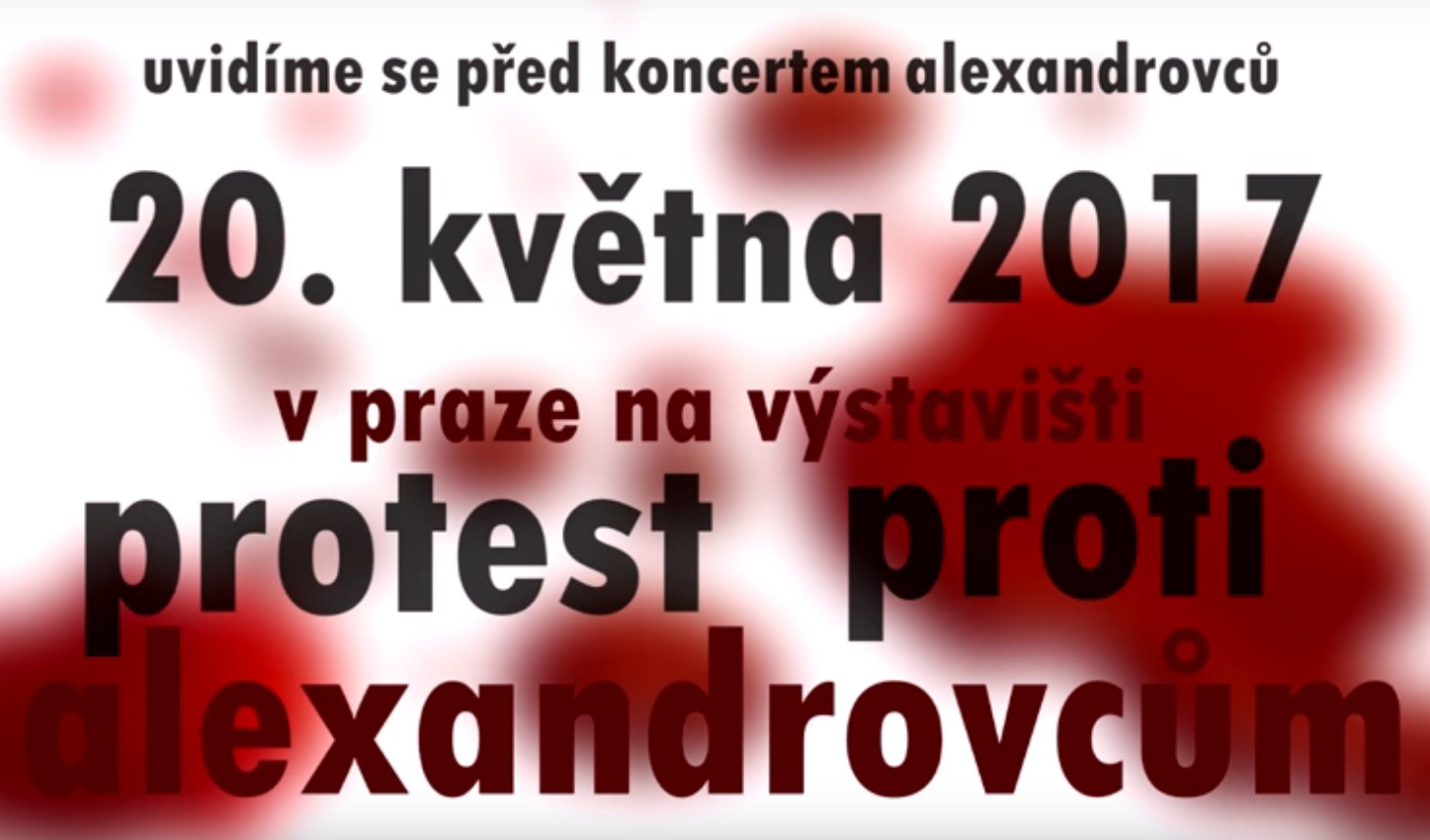 16. května 2017 12:55Skupina odpůrců ruského prezidenta, která si říká Kaputin, chystá protest proti koncertu Alexandrovců, jenž se uskuteční v sobotu v Tipsport Areně na pražském Výstavišti. „Vytvoříme uličku hanby pro návštěvníky koncertu a upozorníme je na skutečnosti o Alexandrovcích,“ stojí v pozvánce na událost.