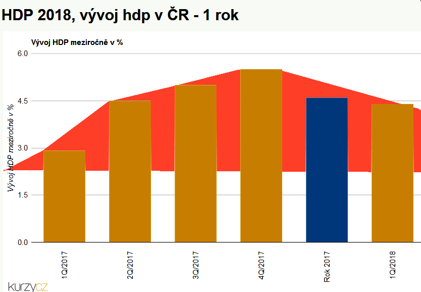 Podle zveřejněných údajů statistického úřadu dosáhl ekonomický růst ČR v prvním čtvrtletí letošního roku 4,4 %. Minulé čtvrtletí jsme se dostali na vrchol s růstem 5,5%. Výsledky prvního čtvrtletí ukazují, že ekonomika zpomaluje a v dalších kvartálech bude toto zpomalení ještě viditelnější. Výsledek kolem tří procent, respektive mírně pod nimi, by proto neměl být překvapením.