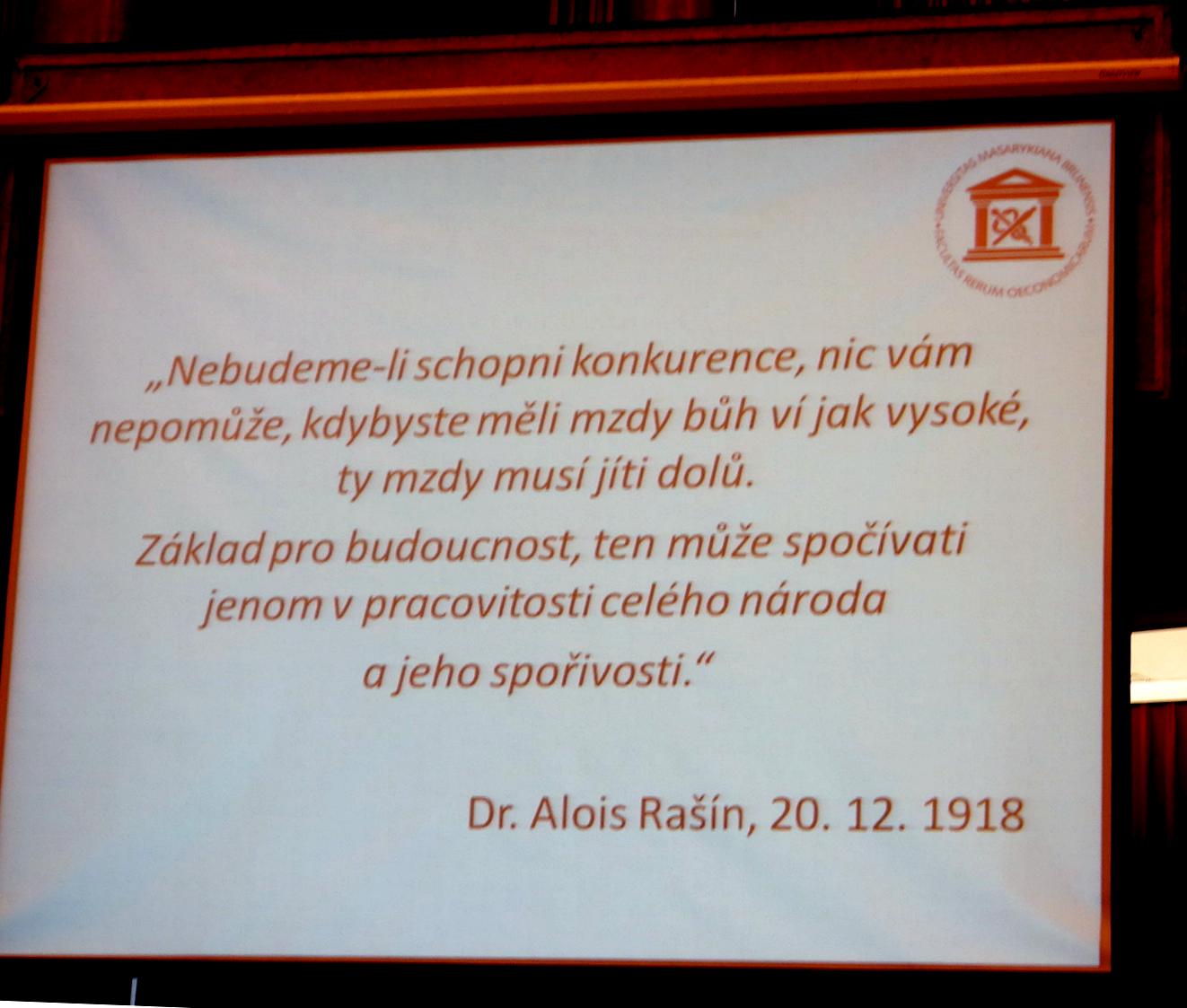 Alois Rašín v roce 1919: Pokud budeme zvyšovat mzdy umělým způsobem, příjdeme o exporty a vydáváme se k velké, průmyslové krizi. Rašínova teorie byla nepopulární za první republiky a je nepopulární i dnes, po stu létech.