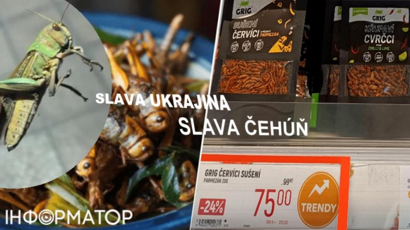 V Čechách, na Moravě a Slezsku červy a cvrčci, na Ukrajině sarančata a kobylky. (Úvodní koláž je z Ukrajiny a českého Globusu jako zdravá výživa. No nekupte to.