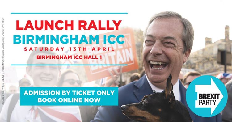 Start Brexit Party se bude konat na ICC v Birminghamu. Blesková akce (rally) se bude konat v Hall One ve 14:00. Dveře se otevřou v 13:15. |