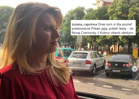 Prezidentka seděla na sedačce mezi ostatními cestujícími. Po boku však měla svou ochranku, která dohlížena na její bezpečnost. Tramvají jela na divadelní představení Příběh gaye, příbeh lesby. Hra se konala k příležitosti sobotního Duhového pochodu Bratislavou za práva homosexuálů.