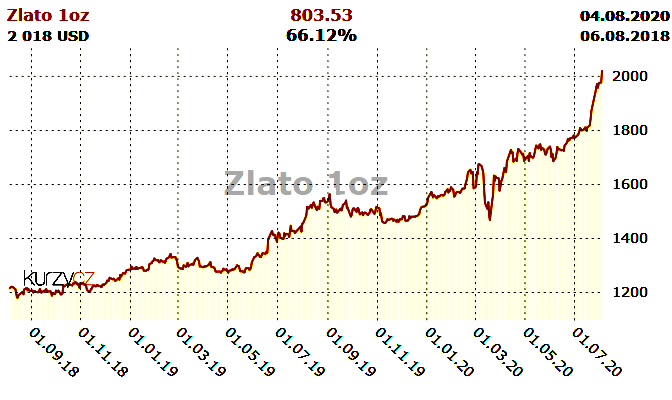 Zlato se v úterý poprvé na konci dne obchodovalo nad 2 000 USD za trojskou unci. Bank of America Global Research zvýšila 18měsíční cíl pro cenu unce zlata na 3 000 USD. Zlatu svědčí balík fiskálních opatření v USA, který USA ještě více zadluží, a tedy ještě více znehodnotí americký dolar," vysvětlují ekonomové.