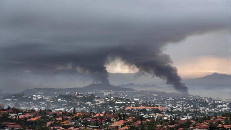 FOTO: Kouř stoupá během protestů v Noumea, Nová Kaledonie. Francie vyhlásila výjimečný stav na francouzském tichomořském území Nová Kaledonie. Francouzský prokurátor pro Novou Kaledonii uvedl, že na nepokoje zasaženém francouzském tichomořském území došlo k další střelbě, přičemž policista byl zatčen poté, co v pátek 24. května 2024 použil jejich střelnou zbraň, když je zaútočila skupina asi 15 lidí. Přichází den poté, co francouzský prezident Emmanuel Macron provedl nouzovou zpáteční cestu z Paříže, aby deeskaloval násilí v Nové Kaledonii, kde domorodí obyvatelé Kanaků dlouho usilovali o nezávislost na Francii.